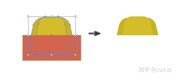 画一个矩形,然后用颜色填充,像下图一样放置,覆盖住圆角矩形的下半部分。我们将会用这个做一个剪刀,保持选中,原位复制(control-C,control-F)