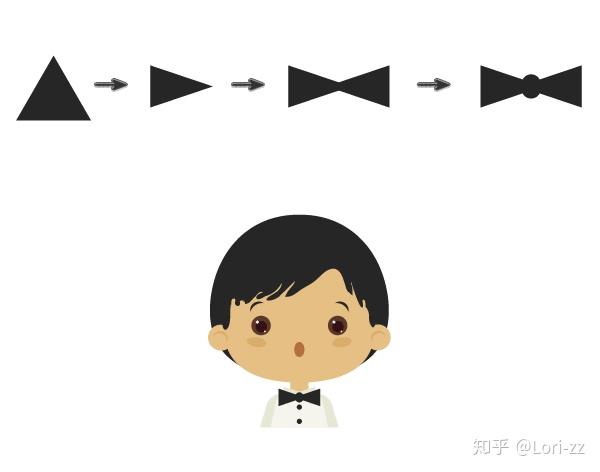对于温柔的唱歌男孩我们增加一个蝴蝶结,使用多边形工具来创造一个三角形,在使他变窄之后,朝右旋转,使用镜像工具(O),创造一个垂直的镜像拷贝,然后在两者之间,放置一个细小的椭圆,来完成领带结的制作,让我们来继续尝试吧。