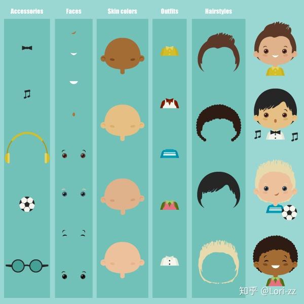 是时候看一下我们现在创造的头像了,把你制作的所有元素结合起来,创造出不同的人物,下面是一些我已经组合起来的人物。