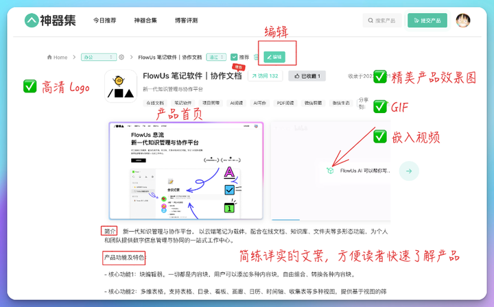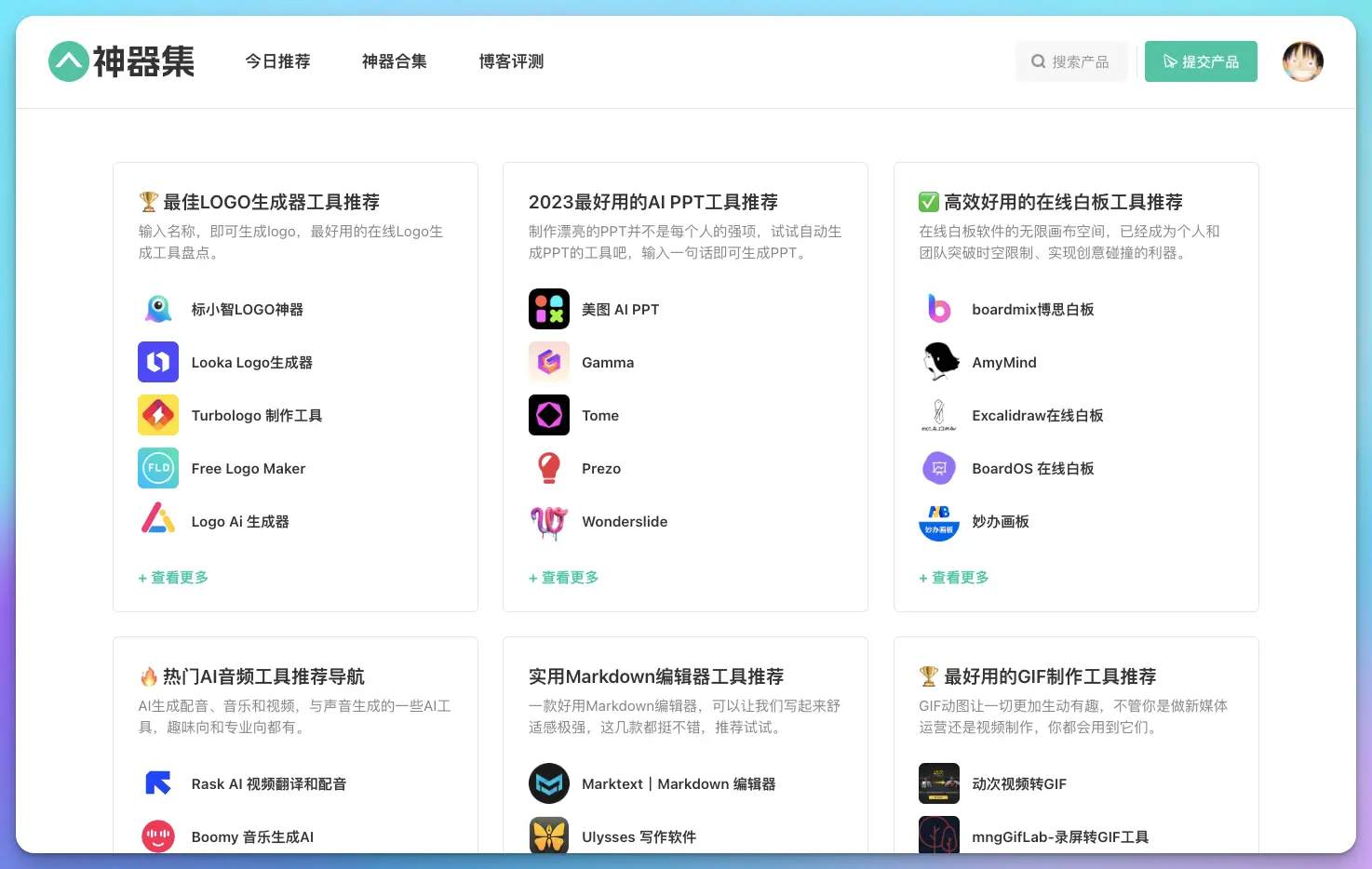 简介:「神器集」是一个发现分享有趣工具的地方。目前,主要以收录在线工具为主,兼具分享一些精选 APP. 神器集提供了每日产品推荐、神器合集、博客测评等内容,以辅助用户快速找到和发现适合自己的工具。